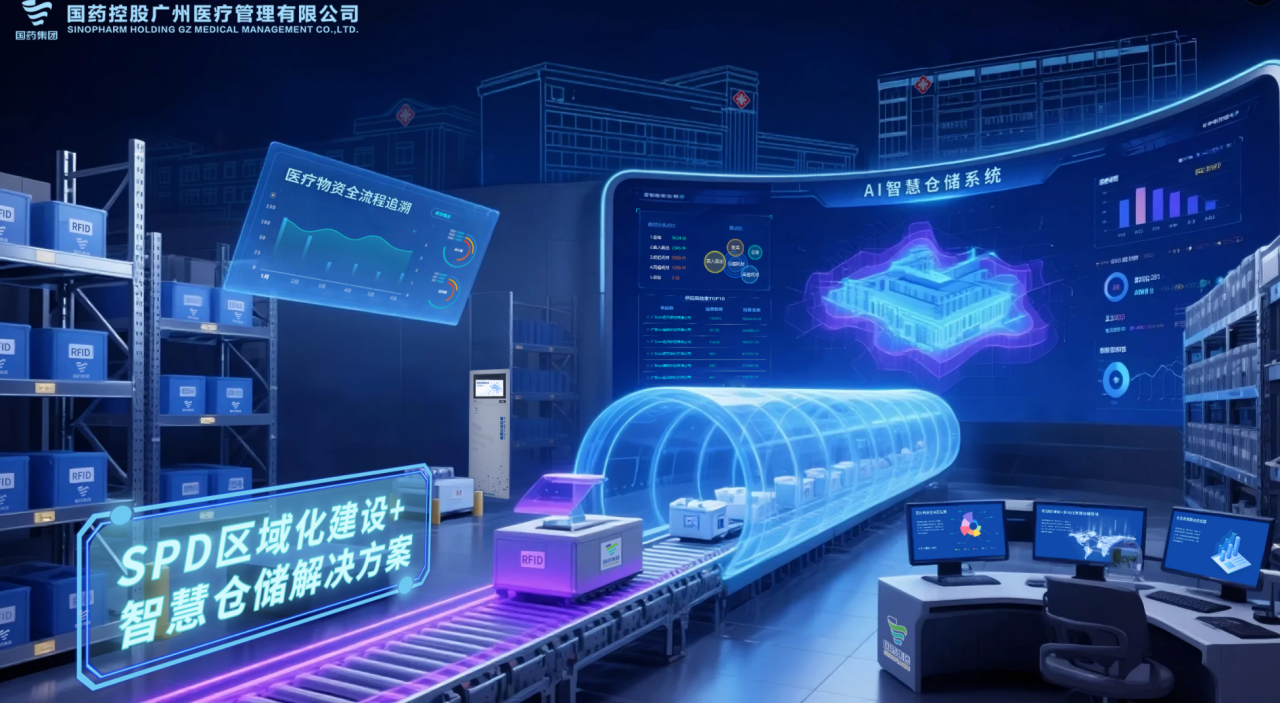 国控广州医疗管理通过探索“跨院协同仓”模式,深度融合SPD管理与RFID技术,自主研发AI智慧仓储管理解决方案并投入实施,实现区域化、多元化智慧仓储管理,有效提高仓储全流程的精准管控能力。