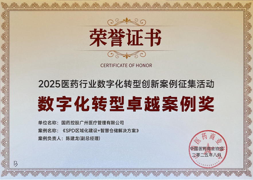 近日,在中国医药商业协会主办的2025医药行业数字化转型创新案例大赛上,国药控股广州有限公司凭借卓越的创新成果和技术突破,在众多企业中脱颖而出,四大医药供应链数字化创新案例一举斩获“数字化转型卓越案例奖”“数字化转型标杆案例奖”“数字化转型人气案例奖”共五个奖项。