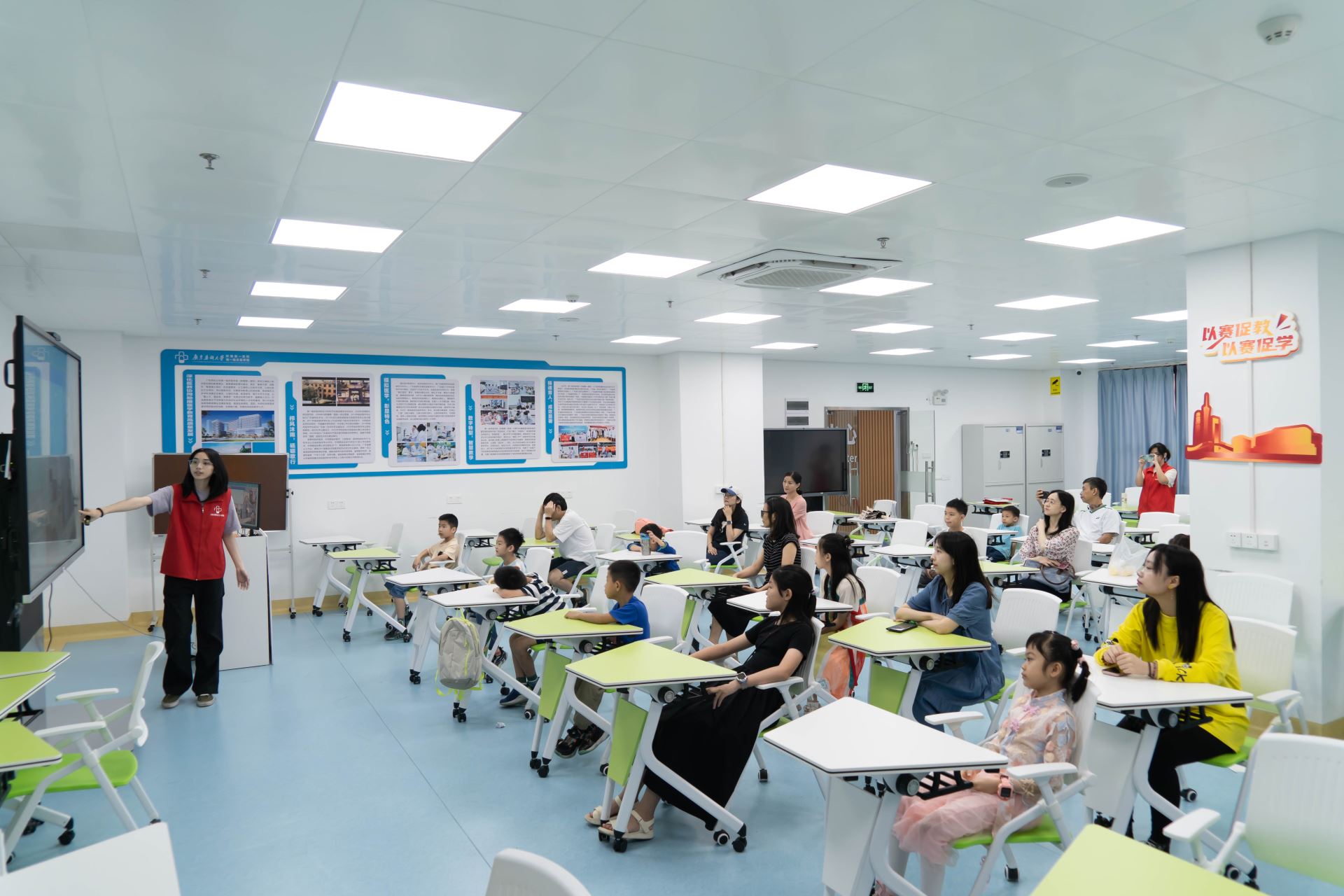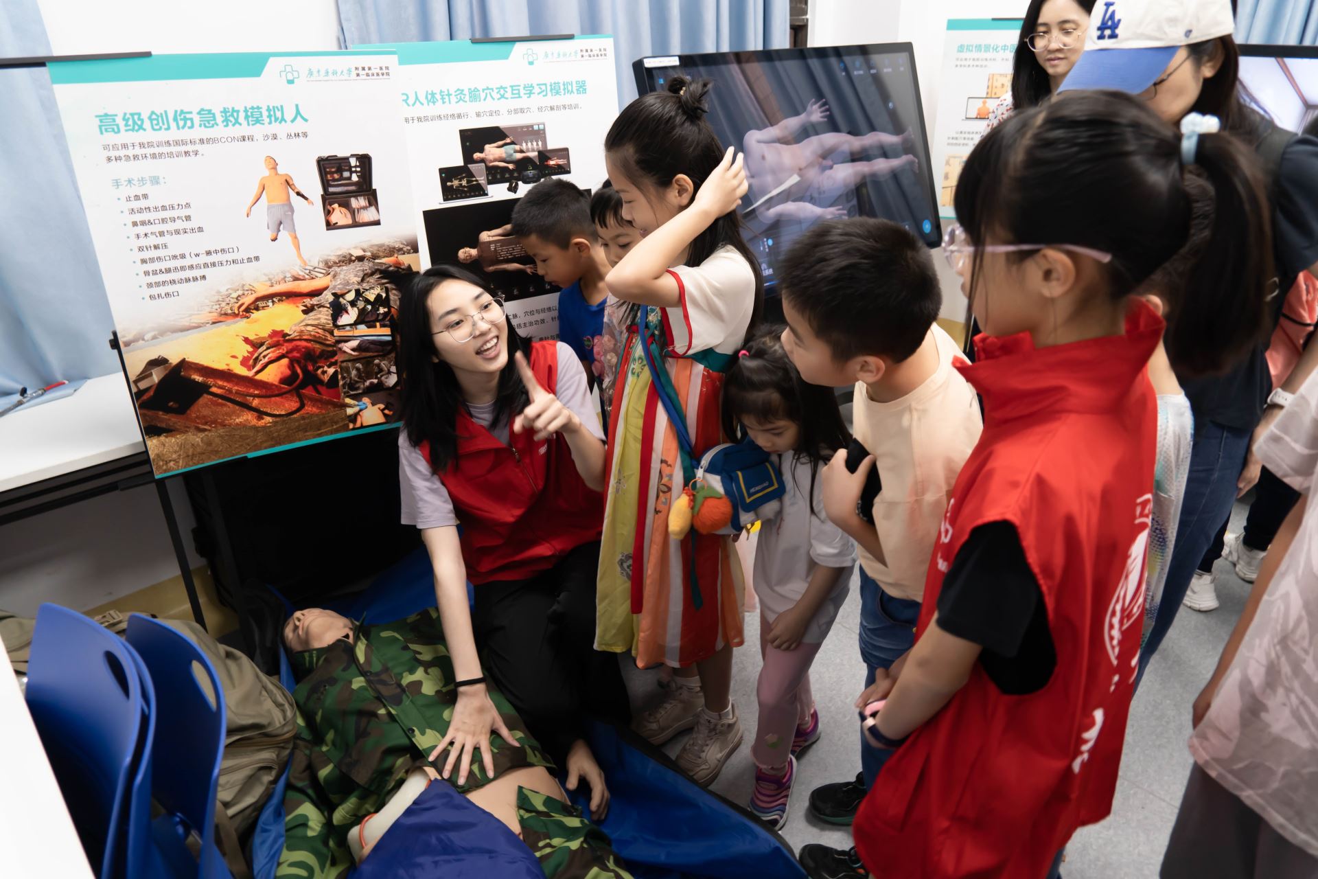 5月25日,连锁大药房分工会与广东药科大学附属第一医院携手举办“临床模拟医学教育”亲子活动,为职工子女带来别开生面的医学启蒙体验。