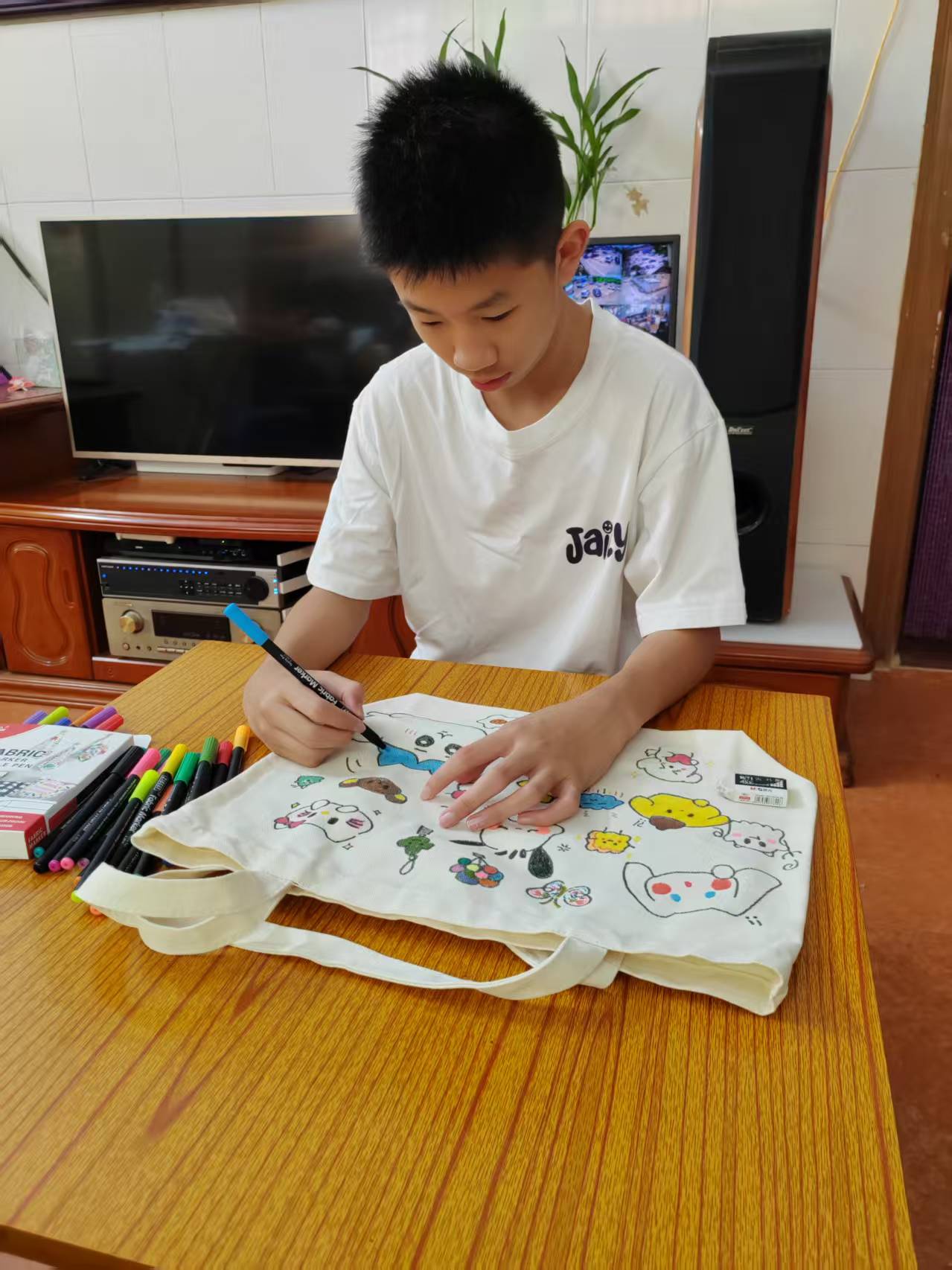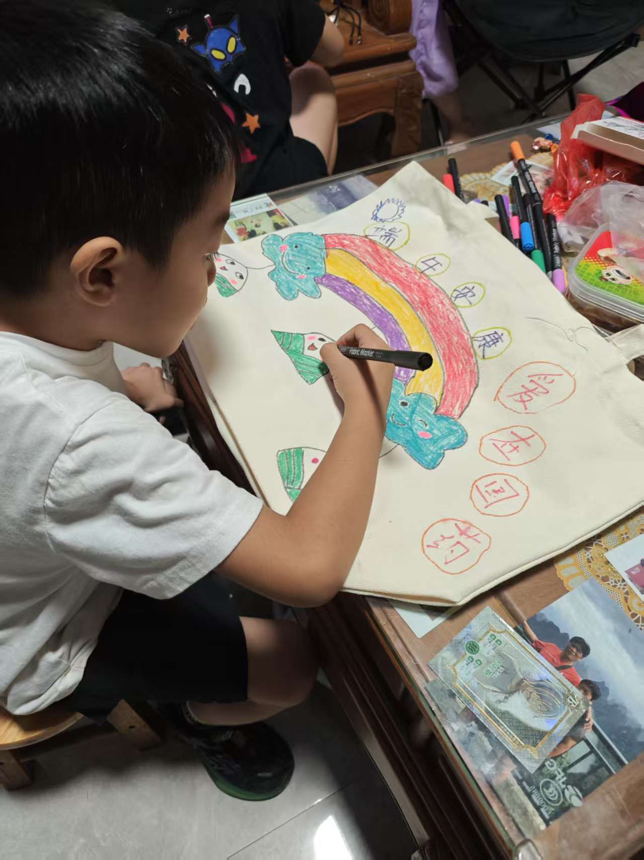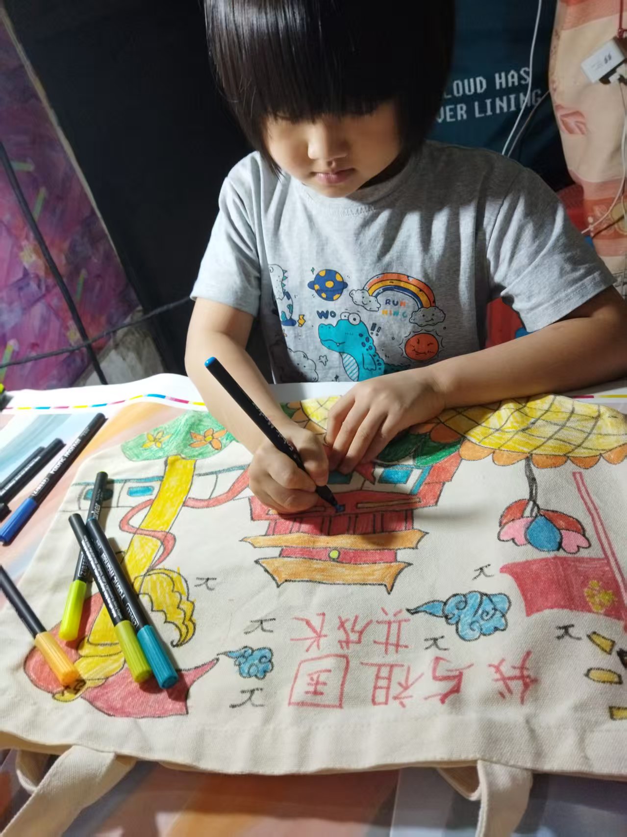 活动中,“小设计师”们化身创意小达人,在帆布袋设计环节各显神通,用缤纷色彩勾勒出独一无二的个性作品,为节日增添了一抹童真与温情。