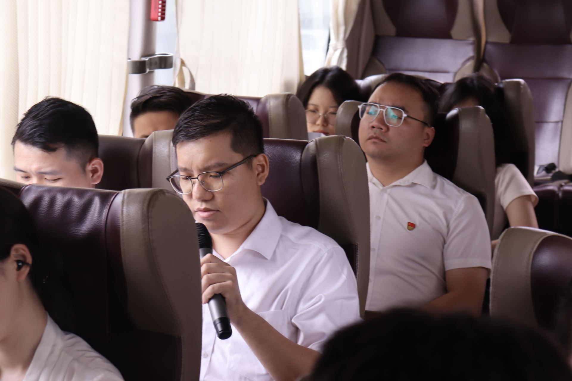 第二站,车载课堂,这趟专列让思政课“动”起来。在团员青年们乘车前往华为广州研发中心的行车途中,开展了一场别开生面的车载思政课堂。学习习近平给谢依特小学戍边支教西部计划志愿者服务队队员的回信精神,并传达了国药集团深入学习贯彻习近平总书记重要讲话和五四回信精神座谈会会议精神、集团团委深入贯彻中央八项规定精神学习教育专题会会议精神。来自国控广州和中药控股的团员青年代表围绕新时代下的形势结合如何在本行业本岗位上挺膺担当、创新展开了热烈讨论,新青年新思想的火花在碰撞中不断迸发。